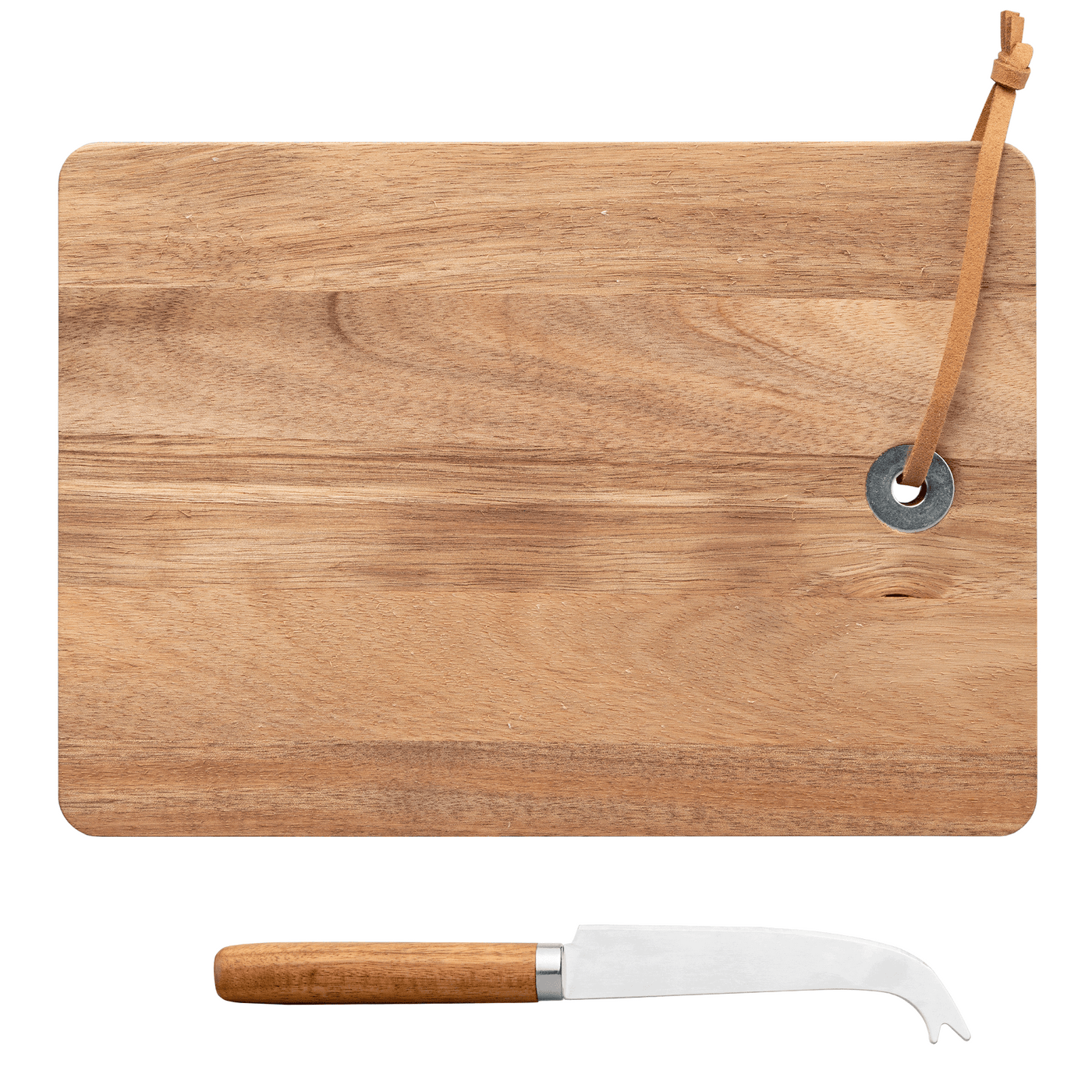 Elevate your gift giving with this thoughtfully designed Serving Board. Crafted from responsibly sourced FSC-certified acacia wood, this nature-inspired accessory brings warmth and elegance to any spread. Its sleek size offers ample space for cheese, charcuterie, or appetizers. The set includes a precision cheese knife with a stainless steel blade and a matching FSC acacia handle for a cohesive look. A sleek PU hanging strap adds convenience and display appeal. With laser decoration available and presented in an FSC-certified kraft gift box, this board is ideal for closing gifts.