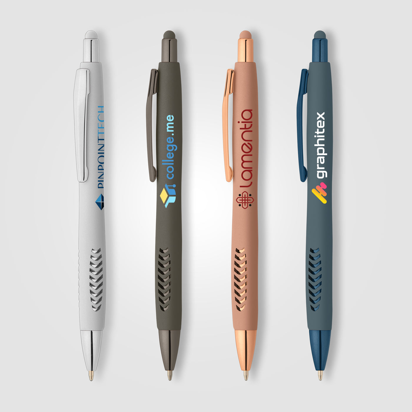 Featuring a luxurious soft touch finish and a Rose Gold die-cut pattern in the grip designed in a triangle shape, this pen effortlessly combines style and comfort.