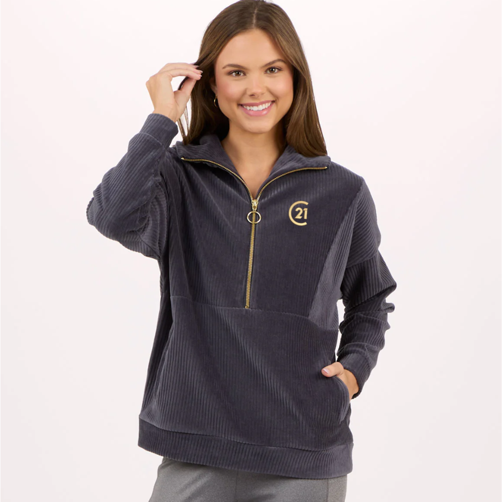 Elevate your off-duty style with the perfect blend of comfort and vintage-inspired charm. The Manchester Quarter Zip Pullover brings a modern update to your weekend wardrobe with its soft, corded cotton-poly fabric that features a velour-like texture and just the right amount of stretch in Castle Grey color.