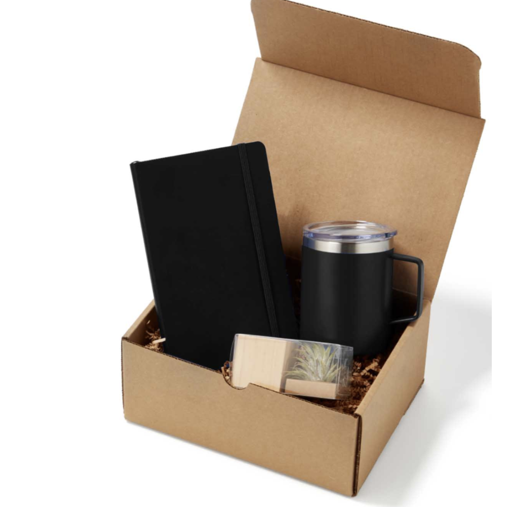 This is the perfect gift set to show some appreciation at the workplace or promote your professional brand. Pricing includes a one color imprint on the mug, notebook, and air plant packaged in a mailer box with shred.
