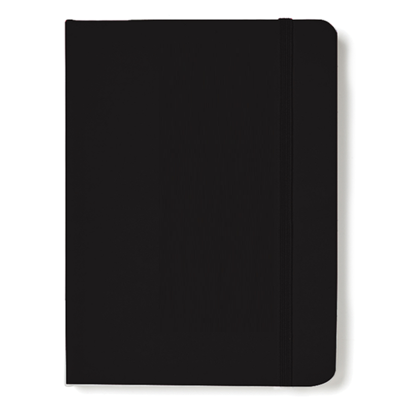 Notebook: 5 x 7". Black with Elastic Band. 80 Lined Sheets. Hard Cover. Printed with your Message 1 color.