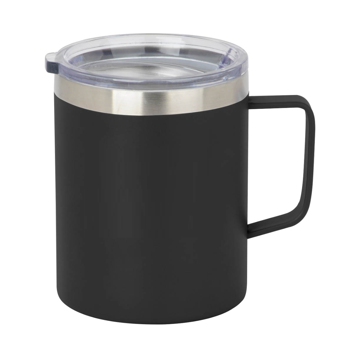 Mug: 12oz Double Insulated. Item Size: 4.5" w x 3.4" h. Printed with your message 1 color.