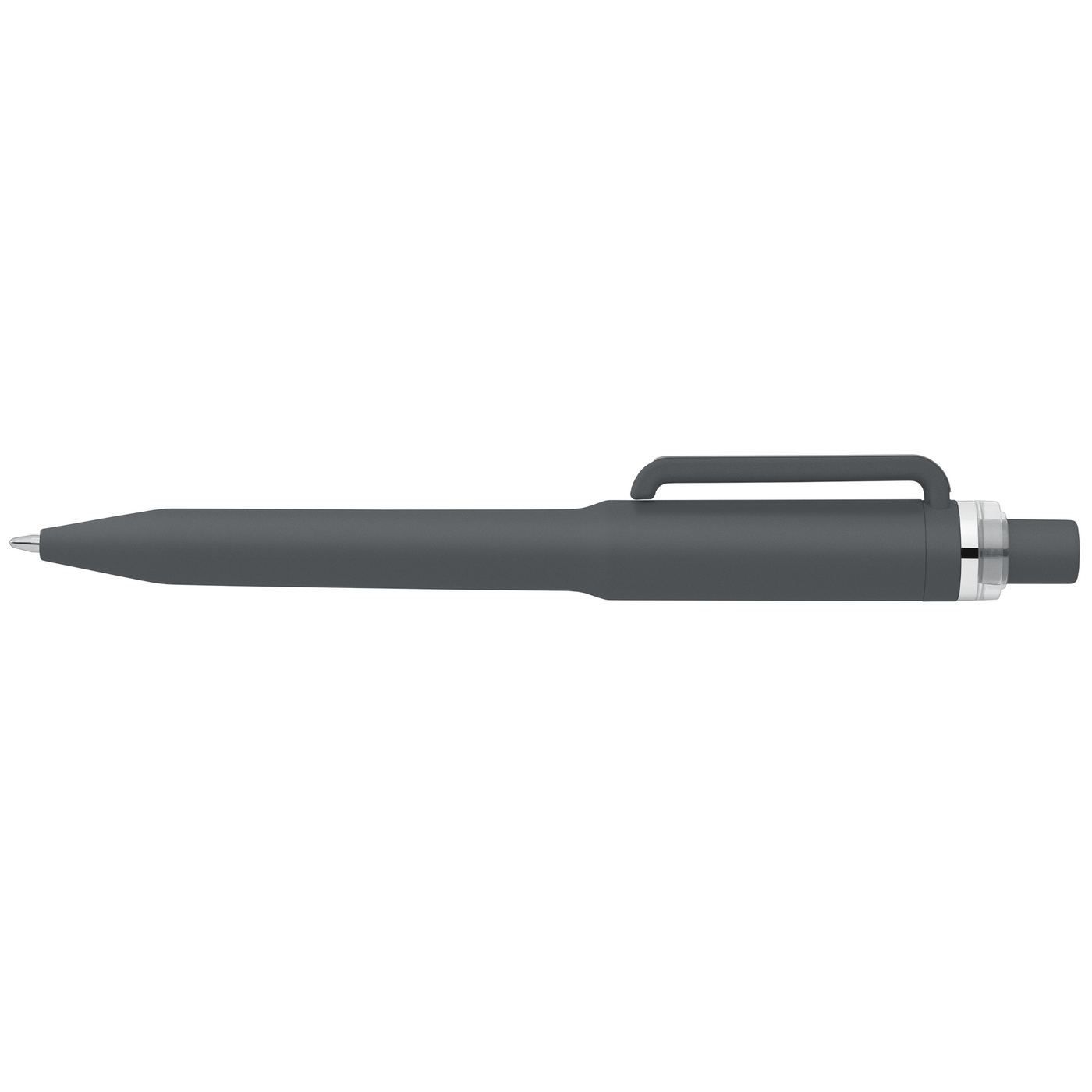 The Polar Recycled Plastic Pen has a unique, drinkware-inspired style, and soft rubber-finish barrel ensures a comfortable grip, while the clip, inspired by tumbler handles and accented with a subtle gray detail, echoes the iconic shape of a beloved classic. A clear top accent with a polished silver ring adds a refined touch, perfectly complementing its smooth retractable mechanism. With a slim ballpoint refill for precise, effortless writing, this pen brings timeless style and practicality to your everyday essentials.