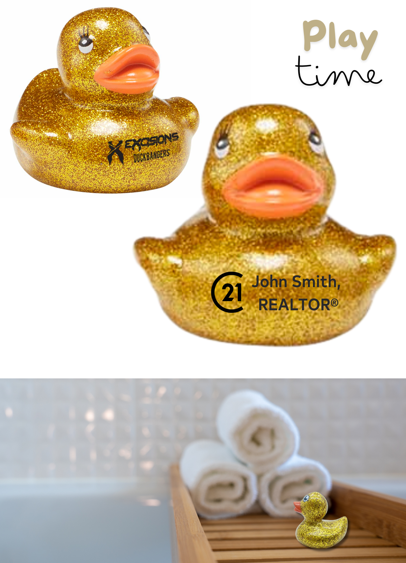 2" Glitter Rubber Duck printed with Your Logo/Name in Black.