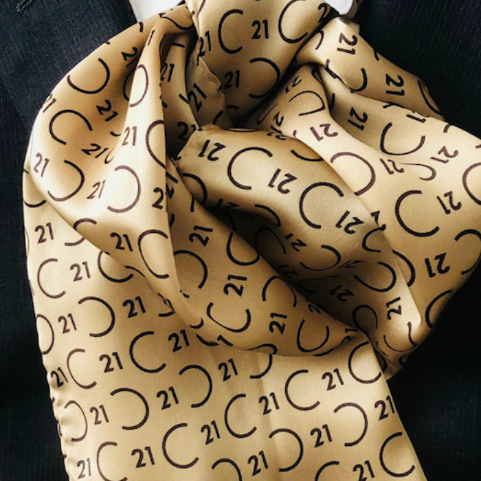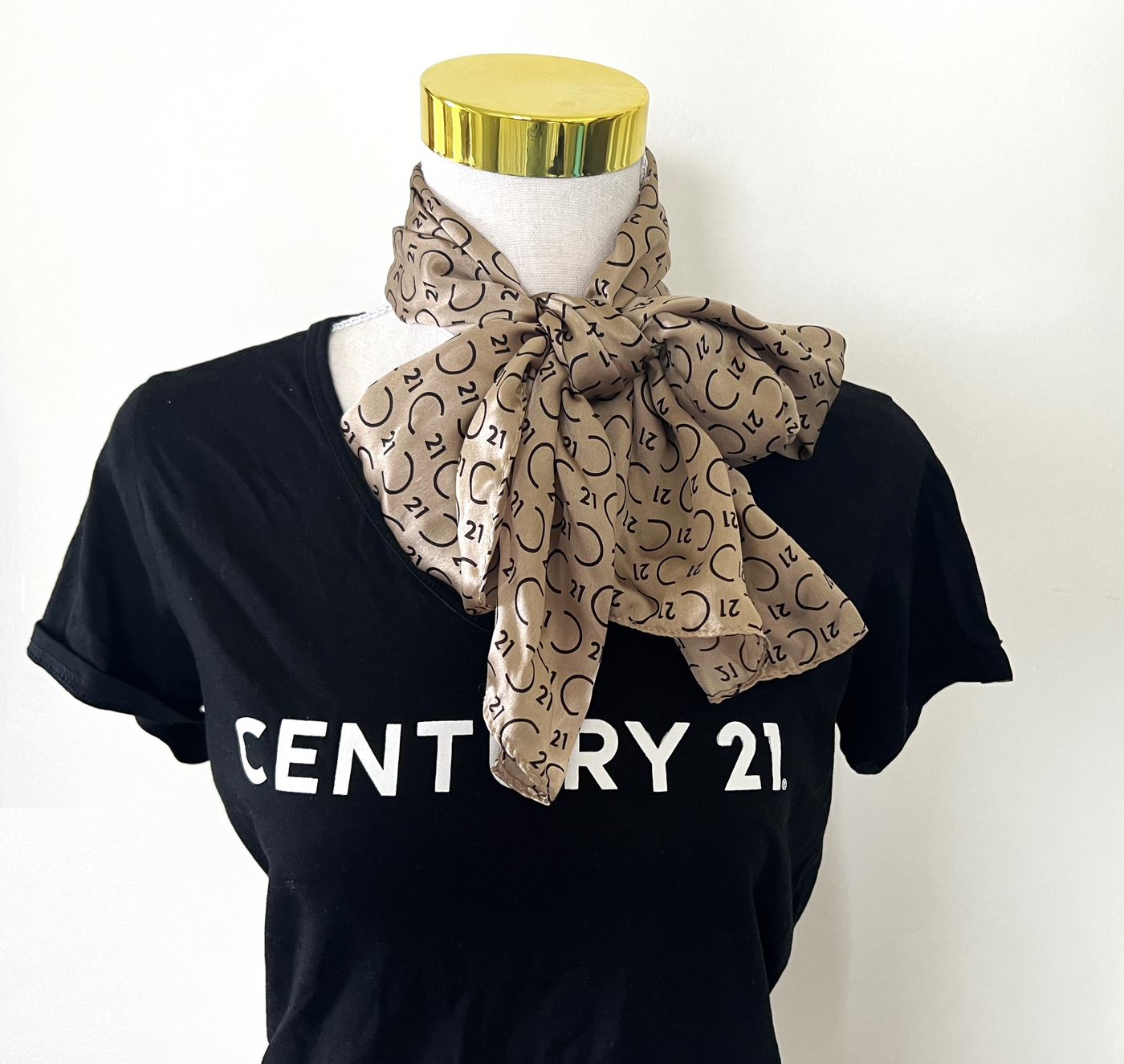 Elevate your style with this exquisite handmade silk scarf, inspired by luxury design and crafted for the discerning Century 21 professional. Featuring the iconic C21 Seal Pattern design, this scarf adds an instant touch of elegance and distinction to any outfit.