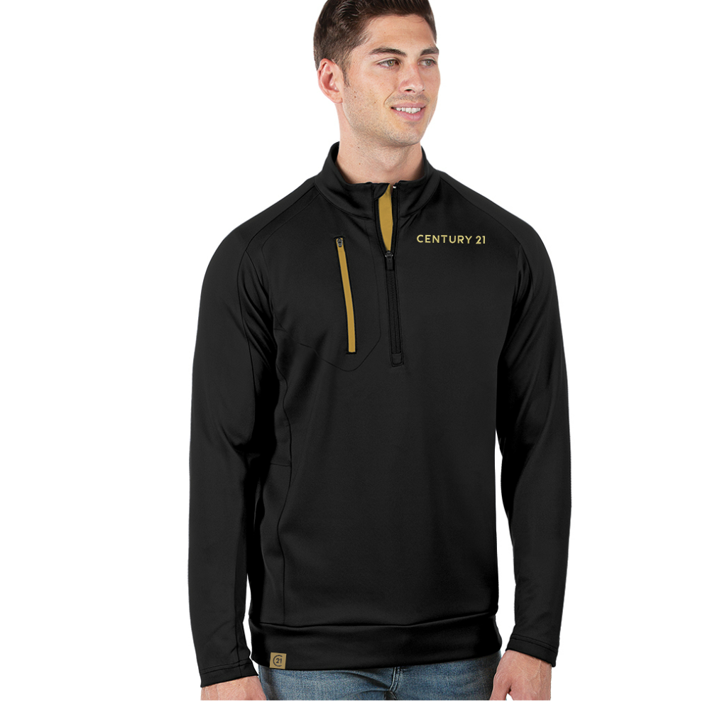 The Generation 1/4 Zip Polo Shirt in Black with Dark Gold trim will effortlessly take you through a busy work day to a day on the Golf Course.