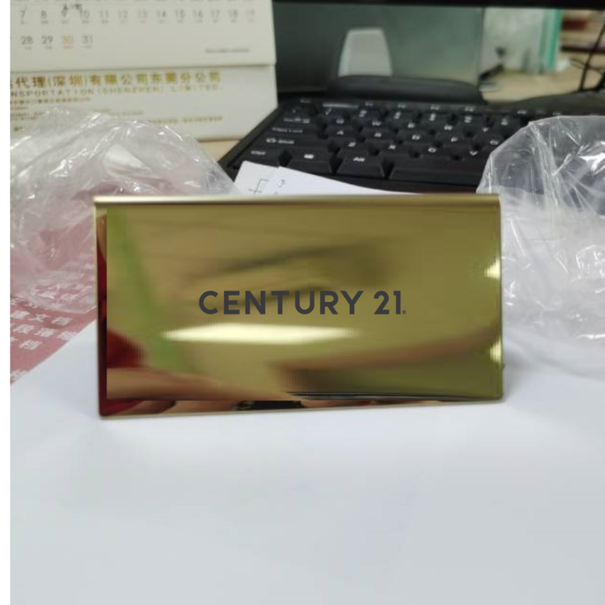 Simple sleek design with lip at front to hold cards and engraved on the back with the CENTURY 21 Wordmark logo.