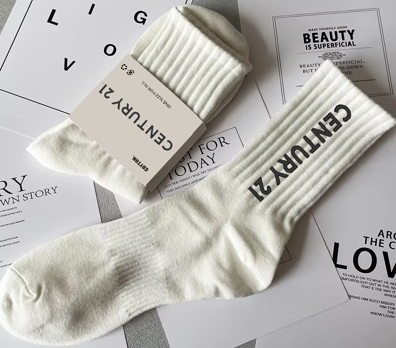 Experience the perfect balance of quality, performance, and branding with CENTURY 21 Wordmark Sports Socks.