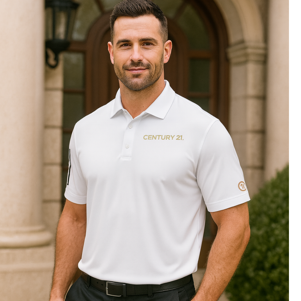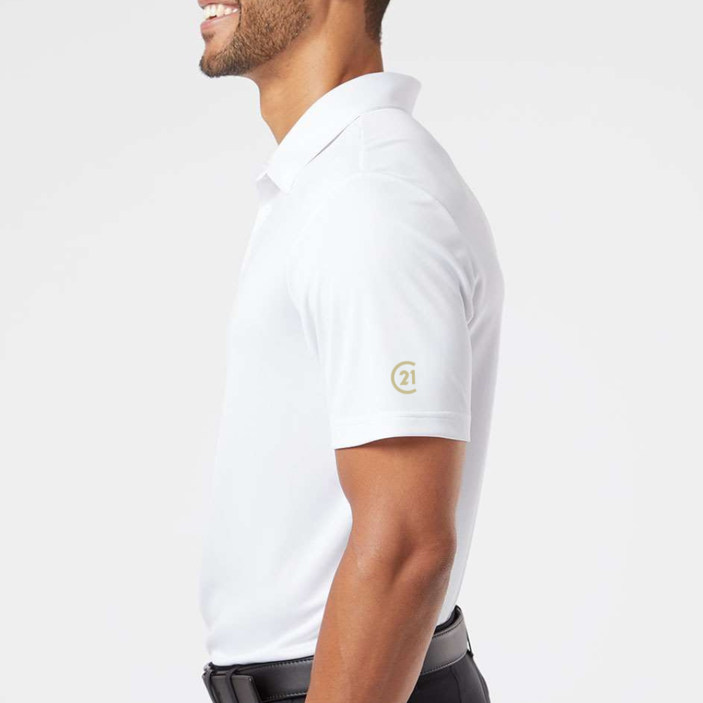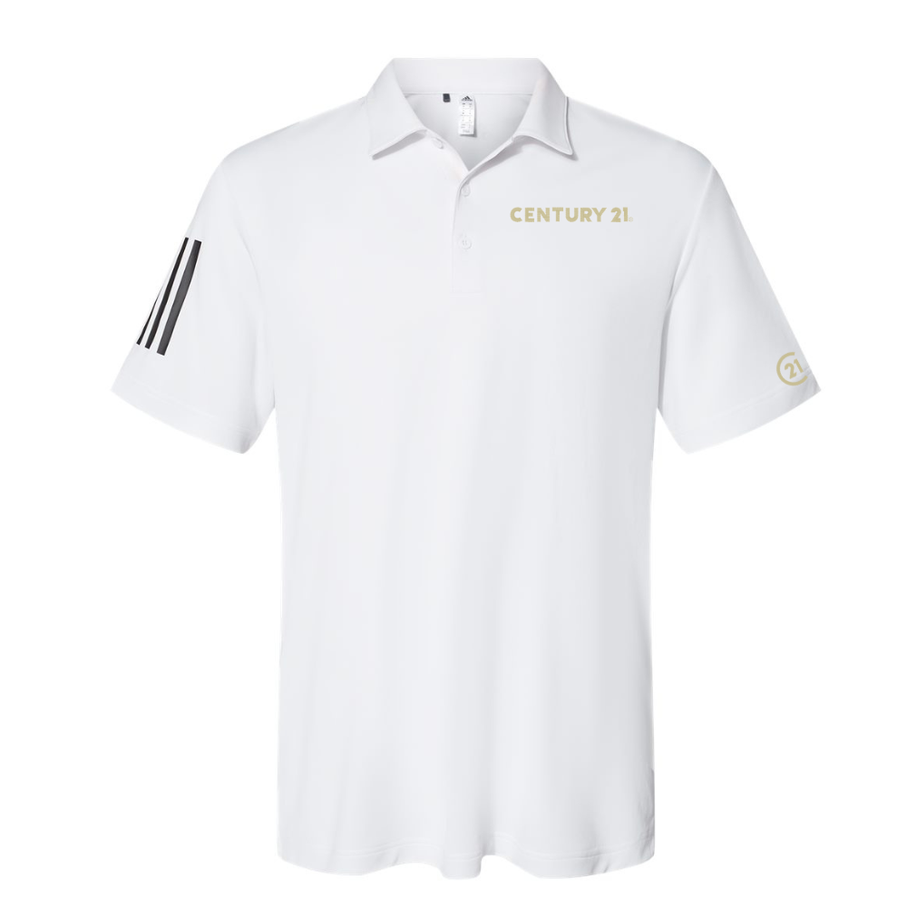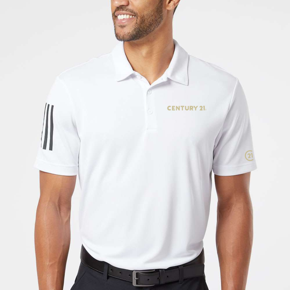 Elevate your professional look with the Adidas 3-Stripes Polo, custom embroidered with the Century 21 wordmark on the left chest and the C21 Seal logo on the left sleeve. Designed for style, performance, and sustainability, this polo is made from 100% recycled polyester with a soft, breathable feel and hydrophilic finish to keep you dry and comfortable all day.