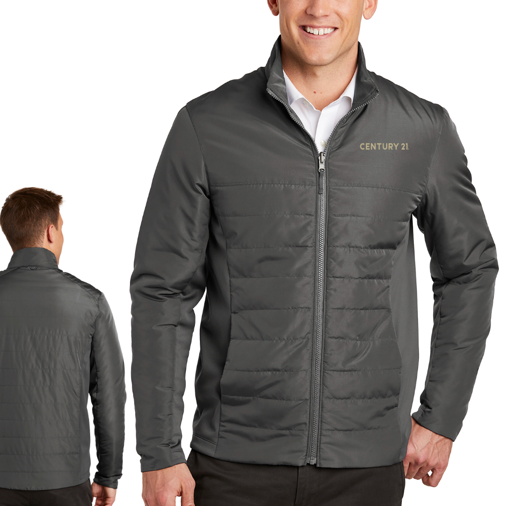 This jacket combines the warmth of low-bulk quilted insulation with flexible soft shell side panels for a trend-right, weather-resistant look.
