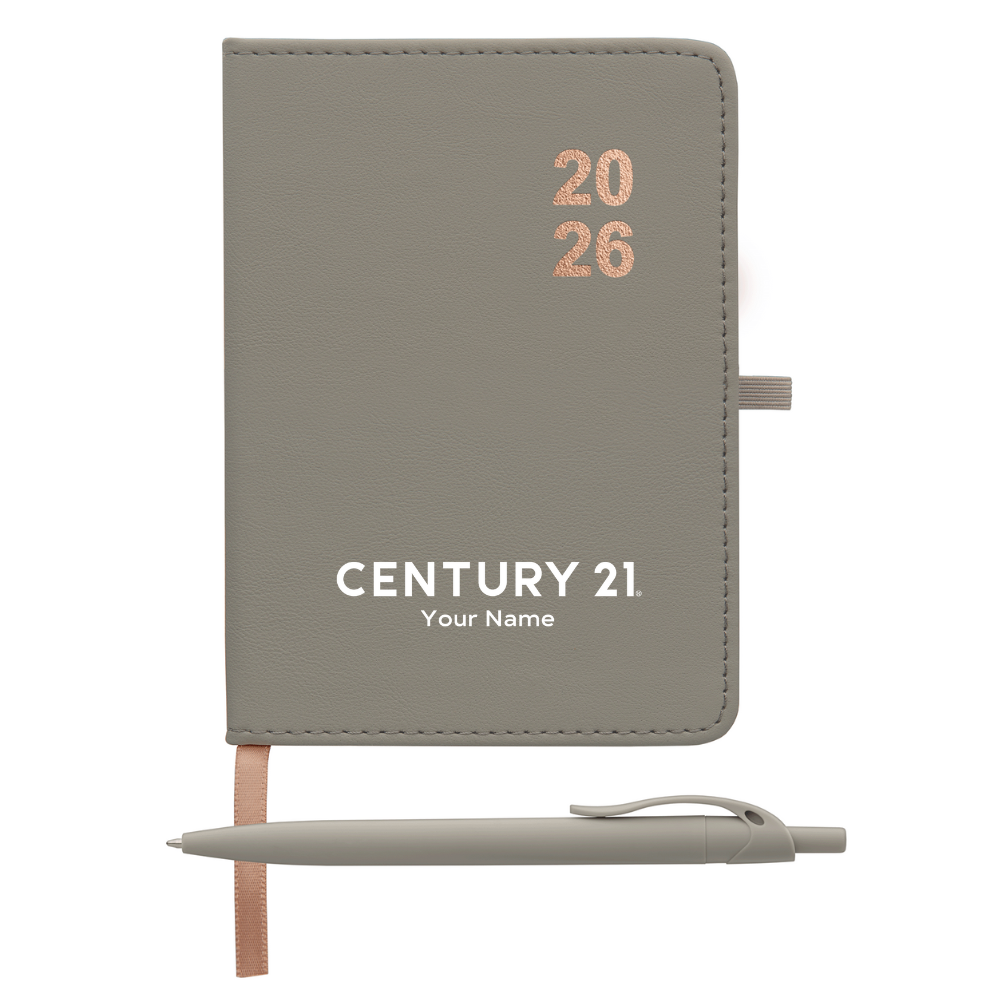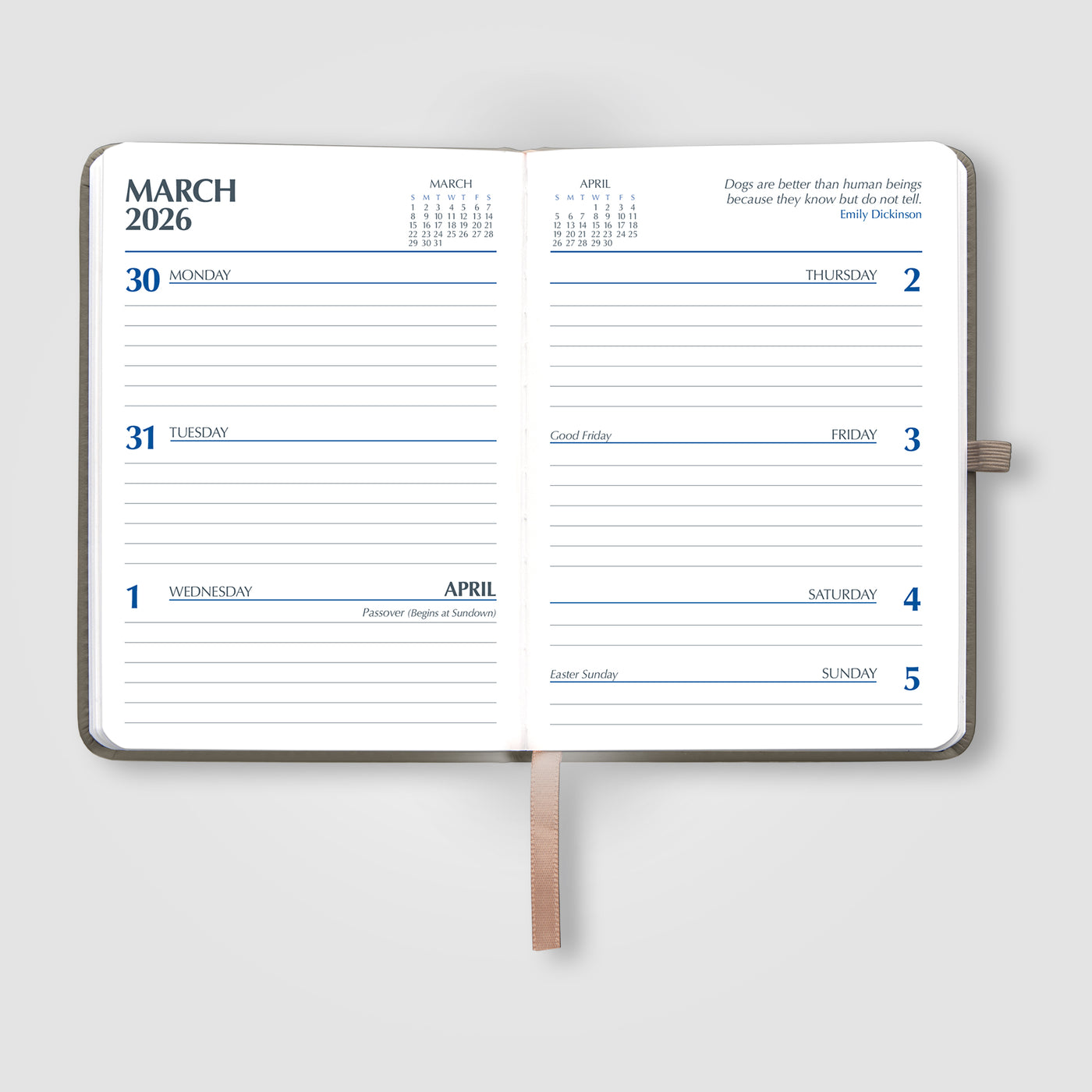 The new 2026 Premium Weekly Planner has a soft-touch cover in your choice of black or grey, with a color-coordinated Scripps Softy Pen included.