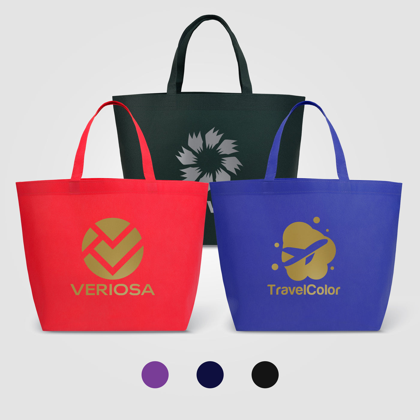 Now with metallic silkscreen imprint, the Julian Shopping Tote is constructed with 80 gram non-woven polypropylene, and it's reusable, recyclable and hand washable. This tote bag measures 20" wide x 13" high, with 20" handles and an 8" wide gusset, so it's ideal for shopping. This tote bag has a large imprint area, so it's perfect for advertising your company. All these features come at a very budget-friendly price point.