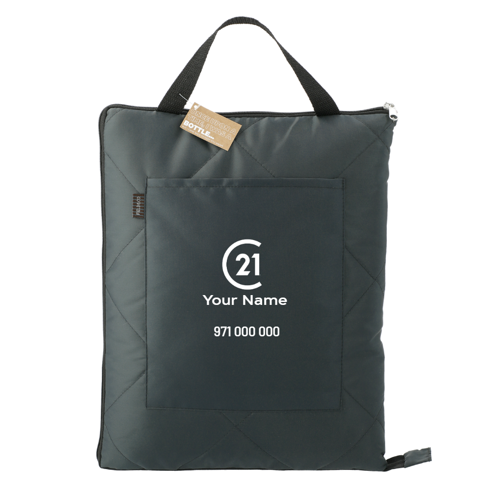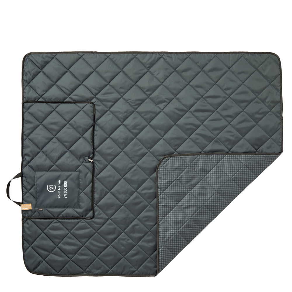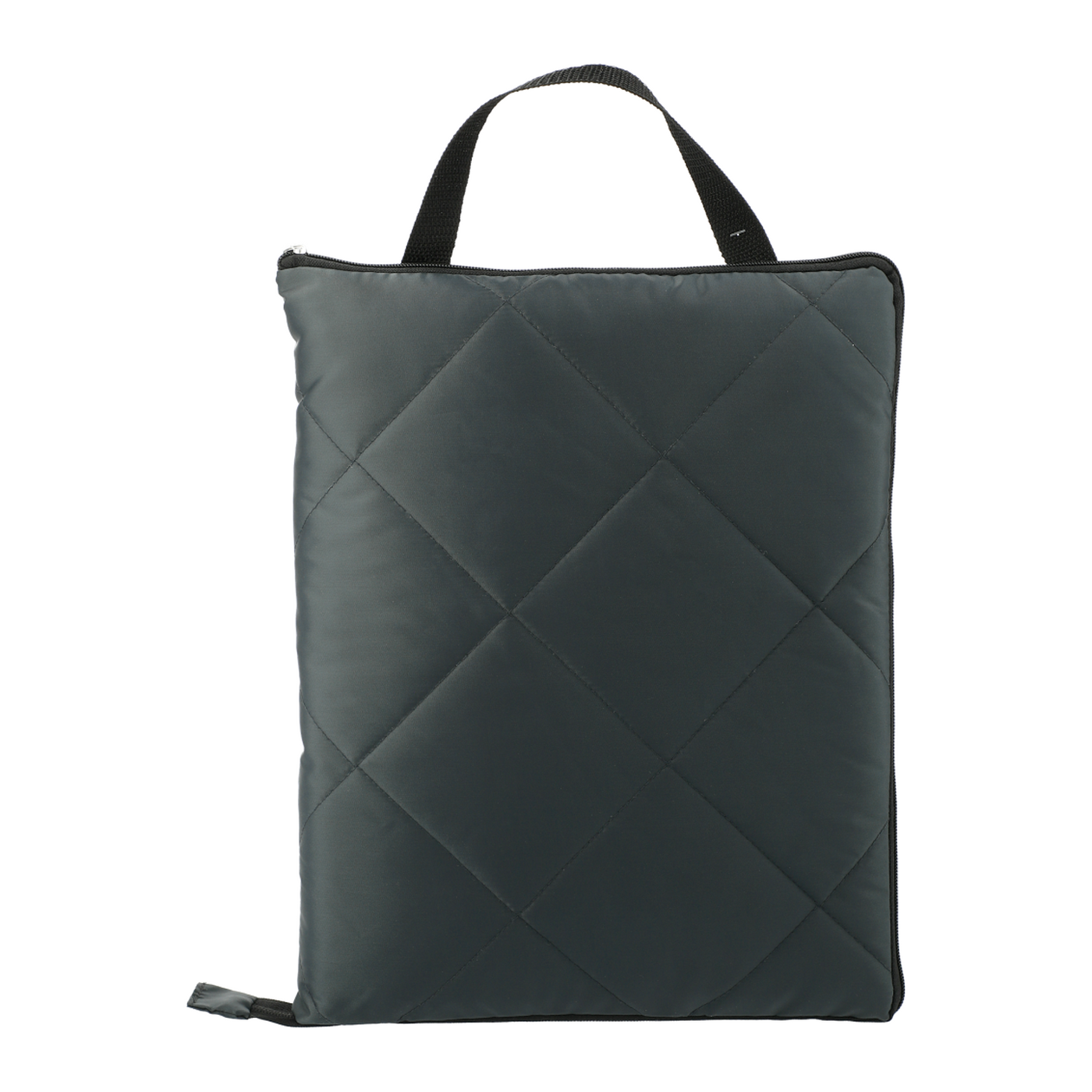 This outdoor blanket features a front slash pocket and webbing carry handles. Lightly padded exterior and waterproof backing. Colour is Charcoal.