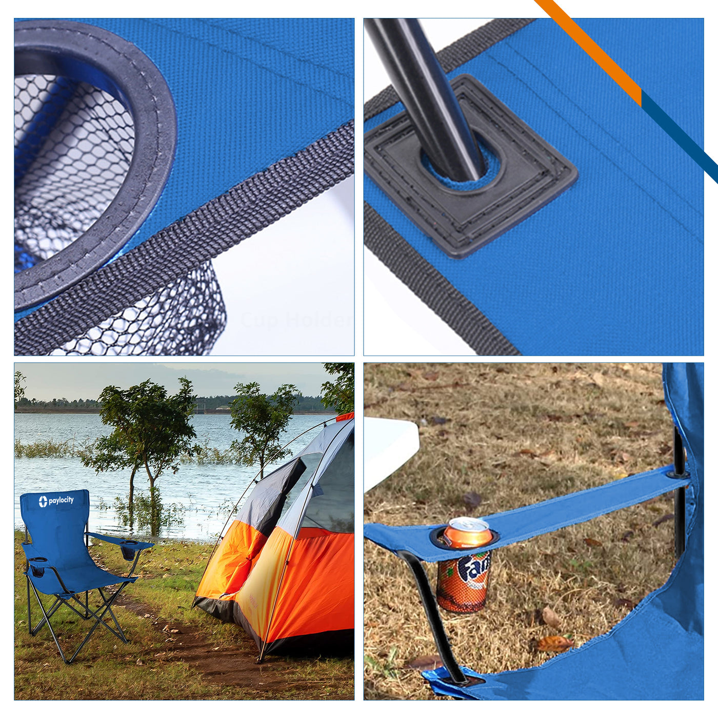 Grab a chair and head outdoors to enjoy nature and fresh air!  The Captain Foldable Chair is made of 600 denier polyester fabric with a powder coated steel frame. The seat features armrest and cup holders to keep your drinks within reach. Comes with a carry case for easy transportation. Foldable design fits most car trunks. Sturdy steel frame construction supports 275 lbs. Suitable for camping, the beach, outdoor concerts, sporting events, etc.