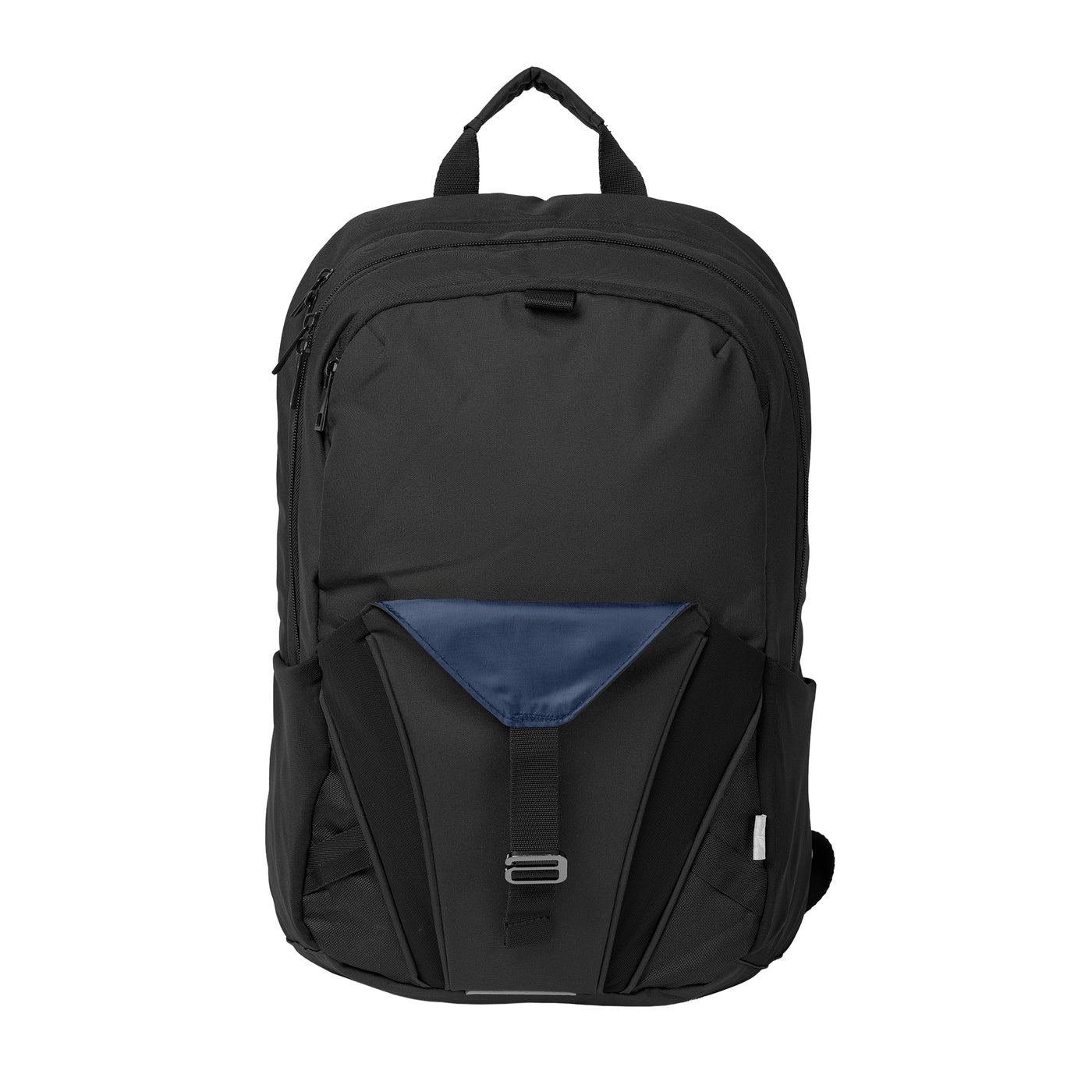 The back compartment boasts a padded 15'' laptop compartment (12"h x 11"w) and a dedicated 10'' padded tablet pocket (10.5"h x 11"w). Key features include: stylish & functional, triple-compartment design; padded laptop sleeve & large mesh pocket; trolley handle strap, grab handle & quick access pocket; breathable, mesh-padded back & adjustable straps; chest-strap w/ built in safety whistle; dual, mesh elastic side-pocket for drinkware or umbrella; reflective accents & multiple utility straps/hooks.