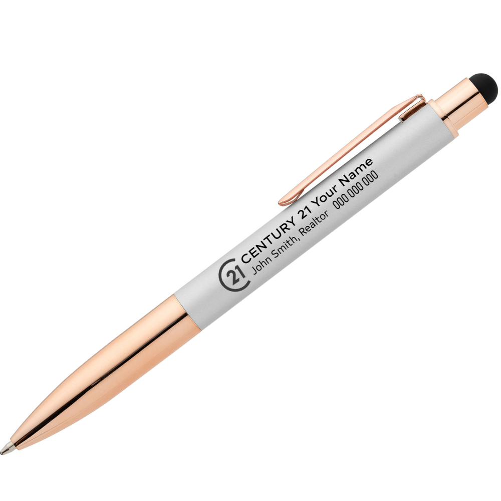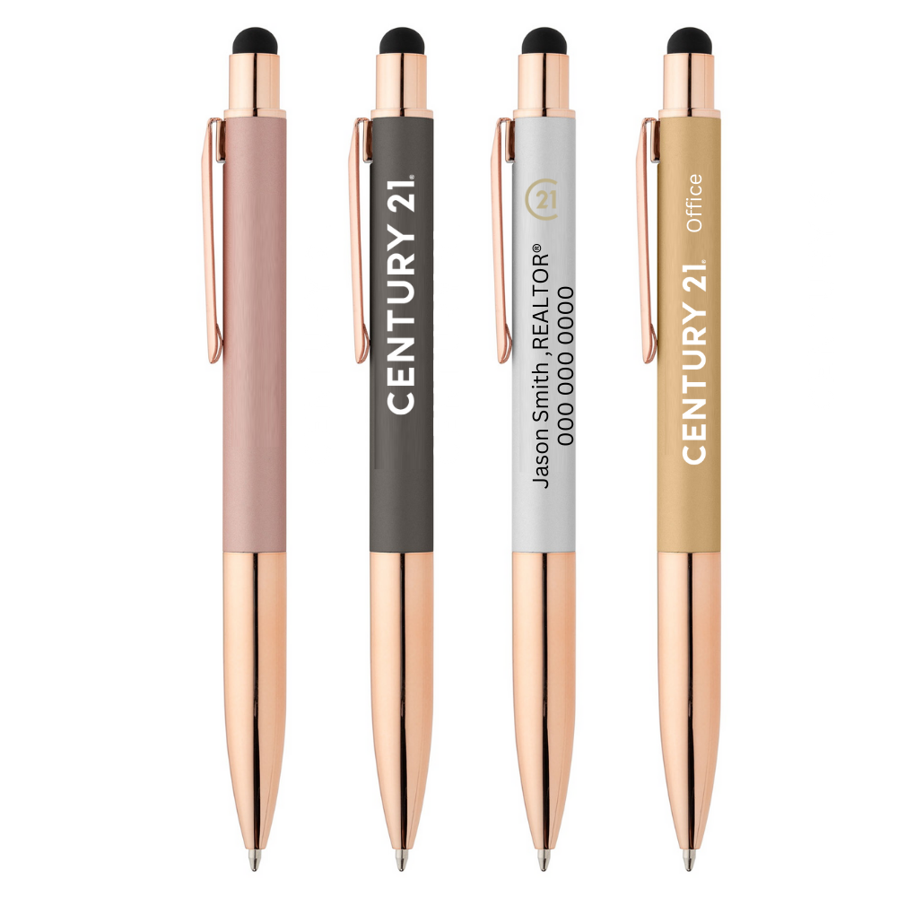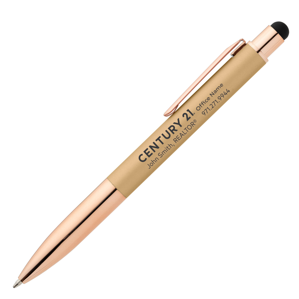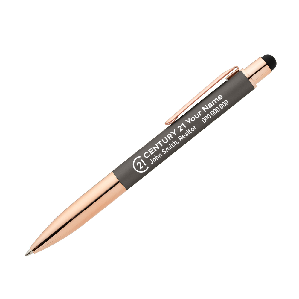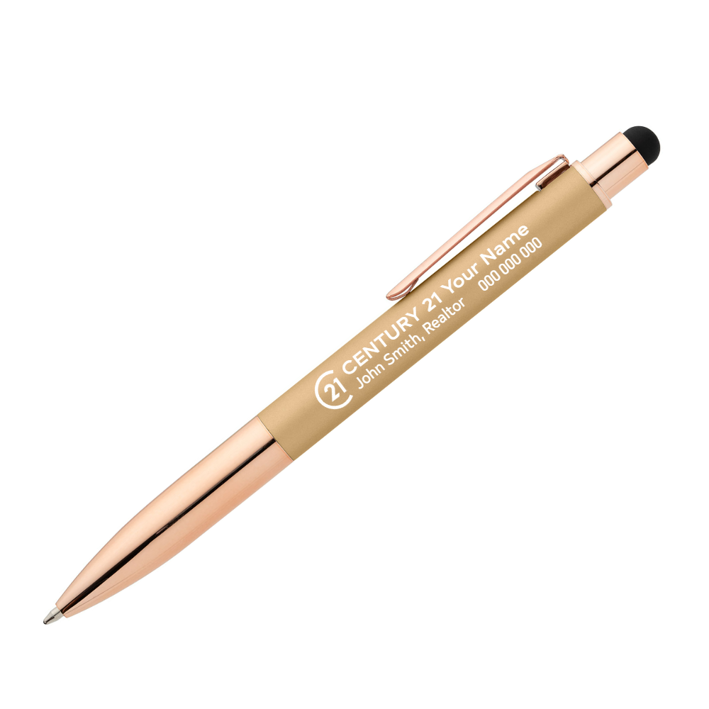 The Baltic Softy Rose Gold Pen features luxurious soft-touch finish in rich, metallic colors on the barrel, the perfect complement to the polished rose gold nose cone, trim and clip. A convenient touchscreen stylus is also included.