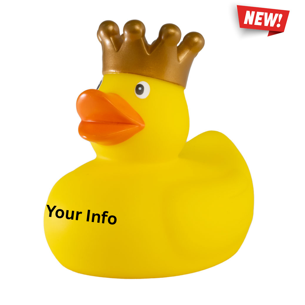 Reign supreme in your bath with our majestic king-themed rubber duck!